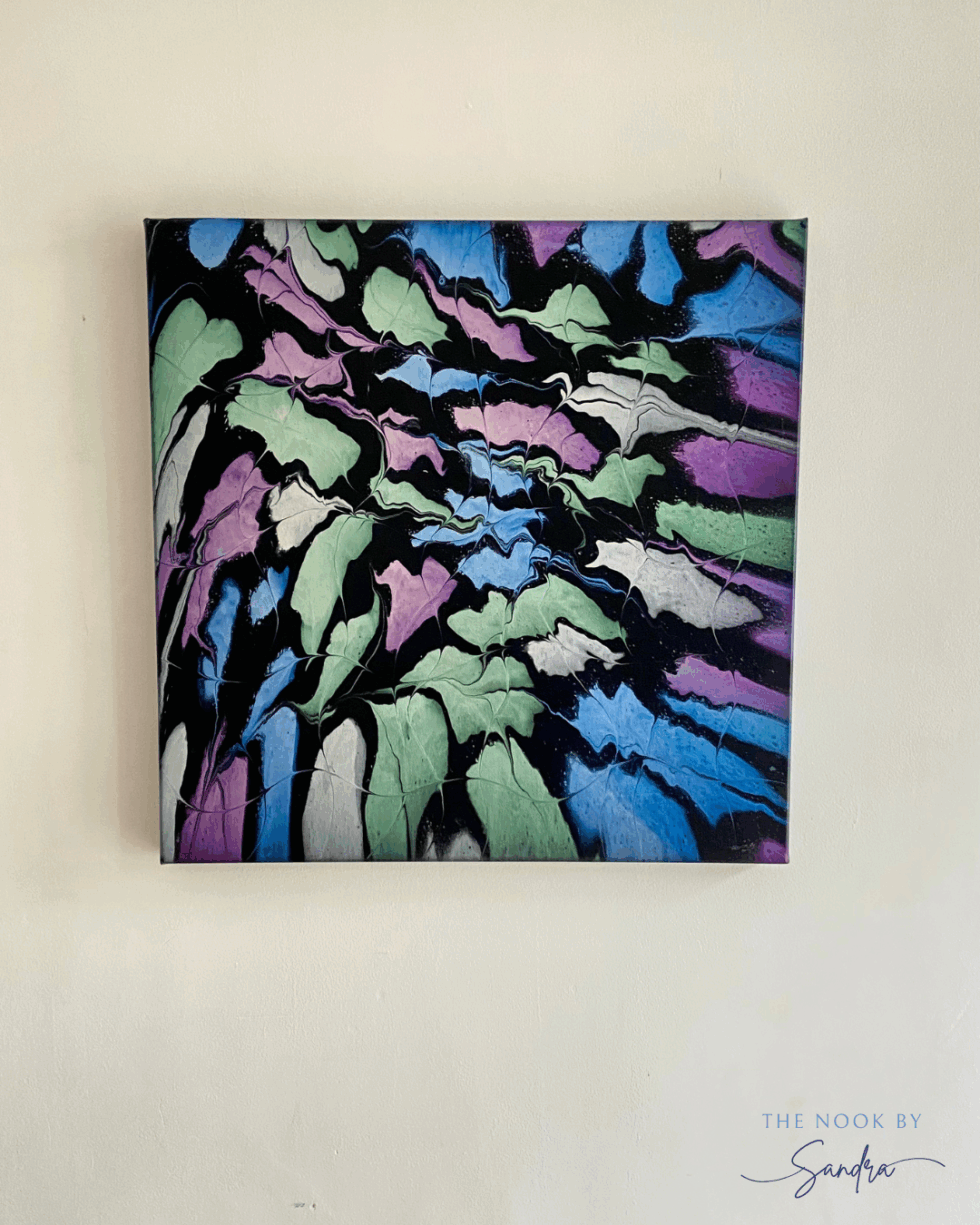 Finished with a glossy resin topcoat, the artwork has a glass-like surface that enhances colours.